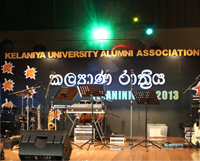 | KelaniNite 2013 18th May 2013 at Clayton Hall, Clayton | ![]() | The KelaniNite the flagship event of the association was held for the fifth time at Clayton Hall. Coulourful stage was a product of combined effort made by the dedicated KUUA committee. This years high light was the performance by the popular Srilankan artists Saumya Liyanage and Ranil Mallawaarachchi. As usual Rasika Kulasinghas danicing group entertained the crowd. Music provided by welknown Melbourne music group Be Sharp. Event continued well over past midnight.